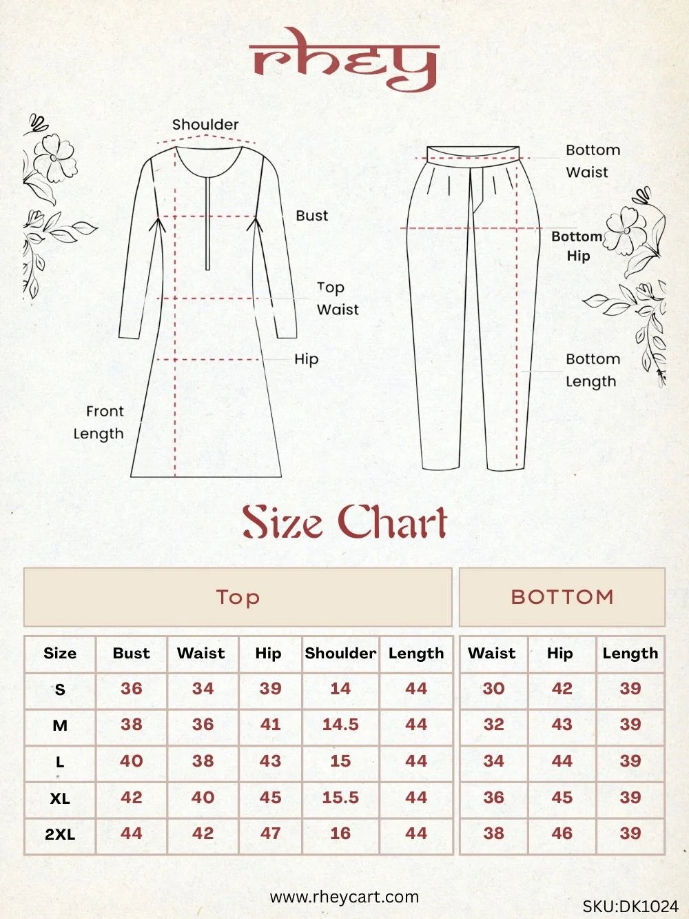 Our sizes are standard and true to measurement. Please refer to our detailed size chart before placing the order. Still unsure? We’re happy to help — just connect with us!